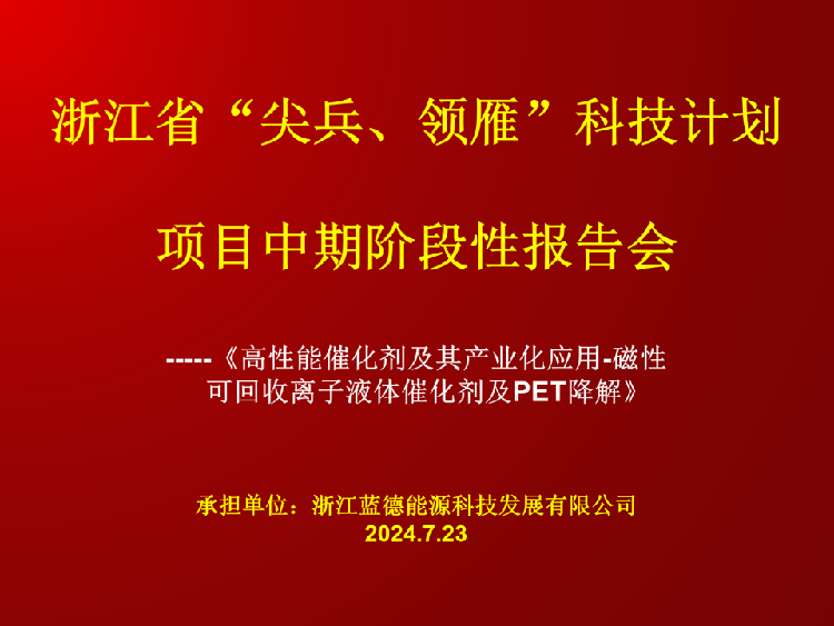 Zhejiang LDET Energy Technology Development Co., Ltd., poduzeo je istraživački i razvojni rad "Vanguard" i "lidera" glavnih znanstvenih i tehnoloških projekata provincije provincije Zhejiang - "Katalizatori visokih performansi i njihove industrijske primjene - magnetska ionska tekućina tekućeg katalizatora i PET -a. LDET-ov tim za istraživanje i razvoj uspješno je razvio prvu generaciju "tri-in-one" kobaltove nano-metal tehnologije za pripremu ionskog tekućeg katalizatora, postigla učinkovitu fermentaciju kućnih ljubimaca i dobila visoko čistoće BHET monomere. Pilot eksperiment je dovršen i postigao dobre rezultate. Uspoređujući napredak postignut u malim eksperimentu s javnim podacima nizozemske tvrtke Ornica, postignuti rezultati u osnovi su dosegli međunarodnu naprednu razinu. Naši samorazvijeni nano-metalni ionski tekući katalizatori istražili su vodeći svjetski inovativni put za učinkovito recikliranje PET-a u zatvorenom krugu kemijskim metodama kako bi se dobili "visoke čistoće i high-end kemikalije BHET".