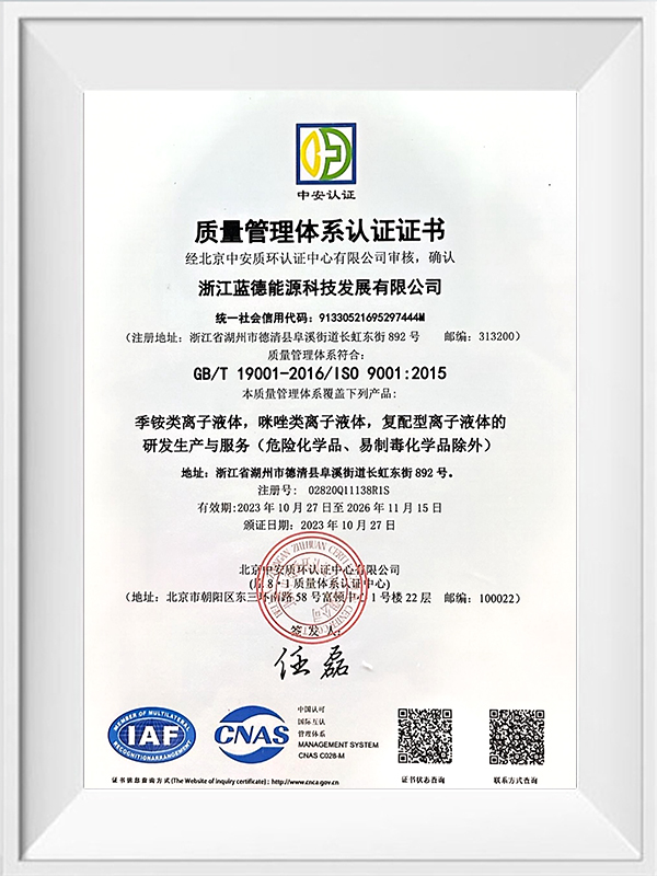 Osnovan 2009. godine i sa sjedištem u zoni ekonomskog razvoja okruga Deqing, provincija Zhejiang, LDET Technology se etablirao kao lider u istraživanju, razvoju, proizvodnji i prodaji jonskih tekućina. S registriranim kapitalom od 36,9 milijuna juana i ukupnom imovinom većem od 220 milijuna juana, tvrtka je uložila u velikoj mjeri u unapređenje zelene kemijske tehnologije. Njegova stručnost obuhvaća više industrija, uključujući kemijsku industriju nafte i ugljena, litijeve baterije, uštedu energije, nuklearne primjene, zelene farmaceutski proizvode i optičke filmove.